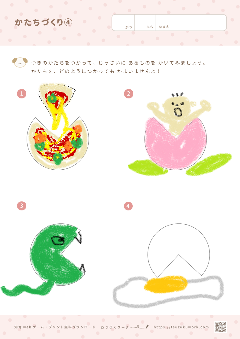 限られた形を何に見立てるかを考えることで、自由な発想力や想像力が育ちます。
